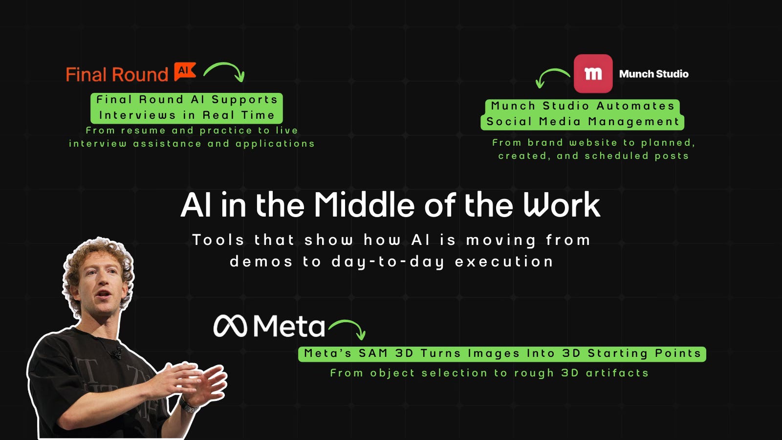 That’s it for this edition of AI Fyndings. With Munch keeping social media running without constant attention, Final Round AI supporting interviews as they happen, and Meta’s SAM 3D making early 3D exploration easier, this week was about AI stepping into parts of work that usually slow us down.
