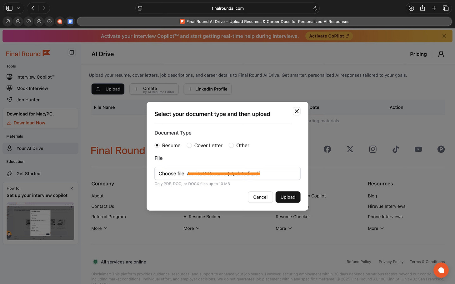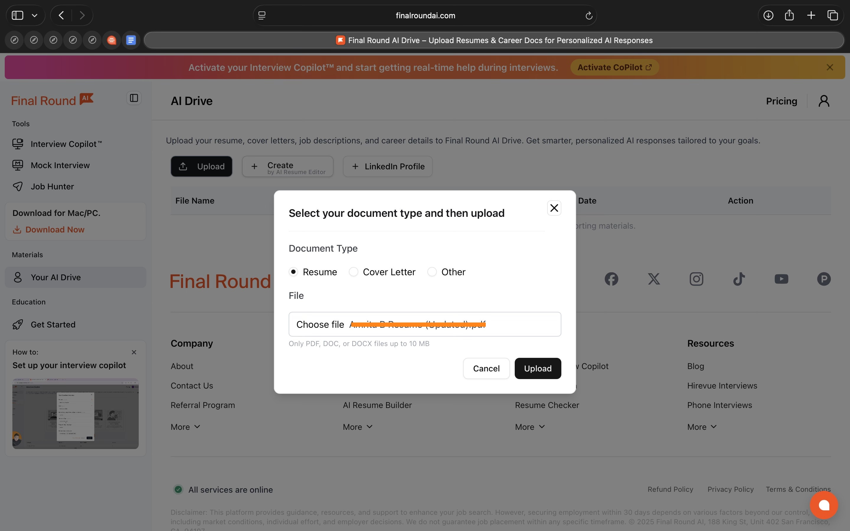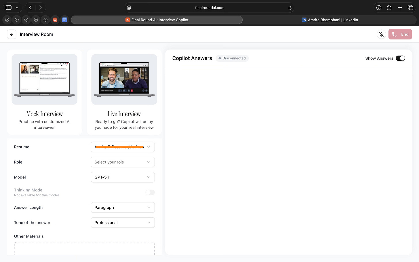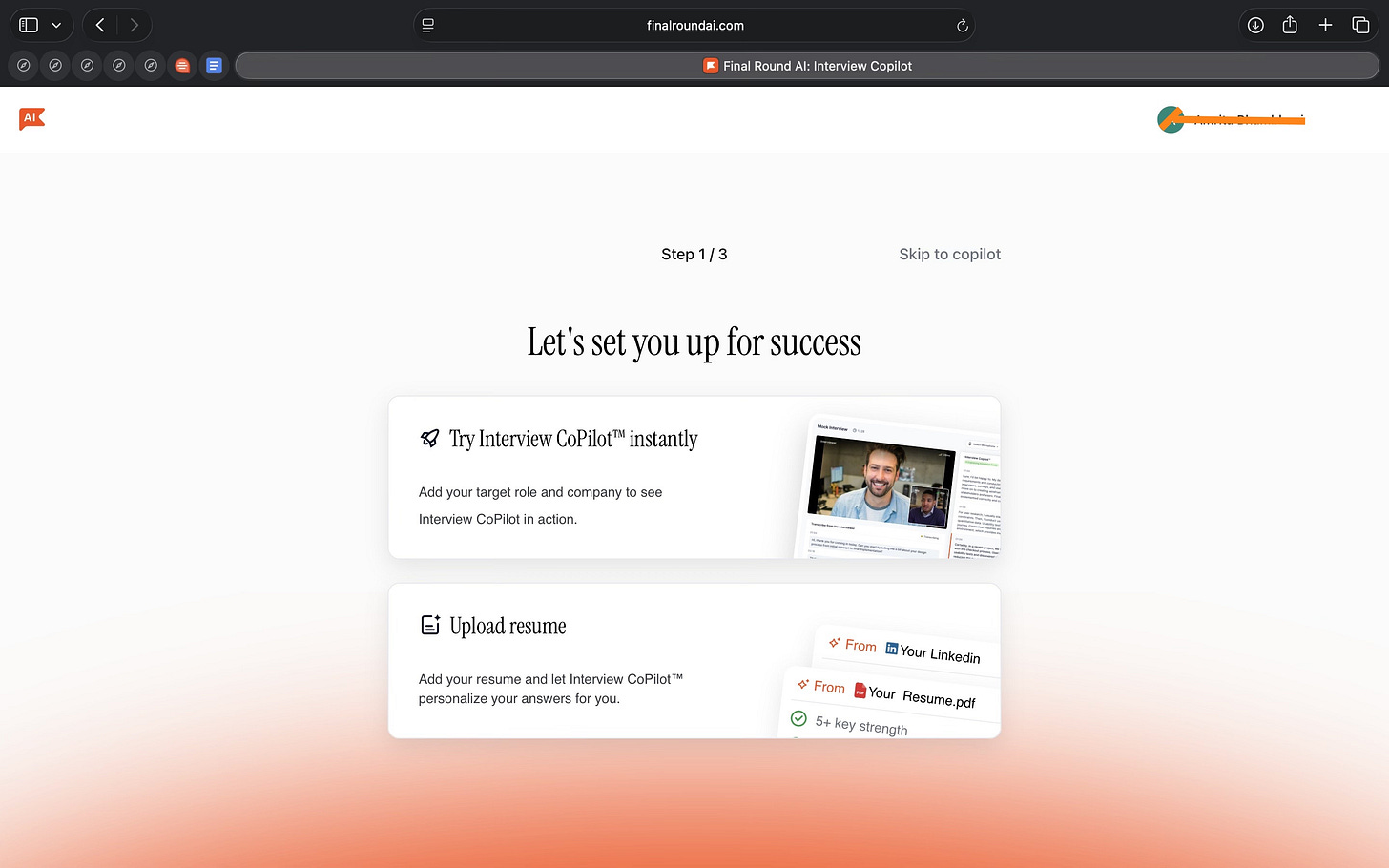 I tried Final Round AI by setting up a mock interview using my resume and role, and then exploring how the interview copilot works once an interview begins.