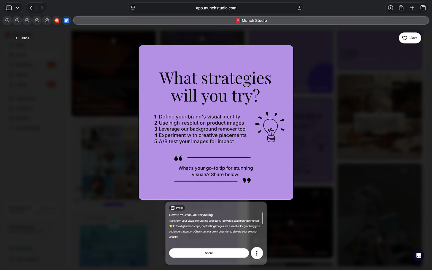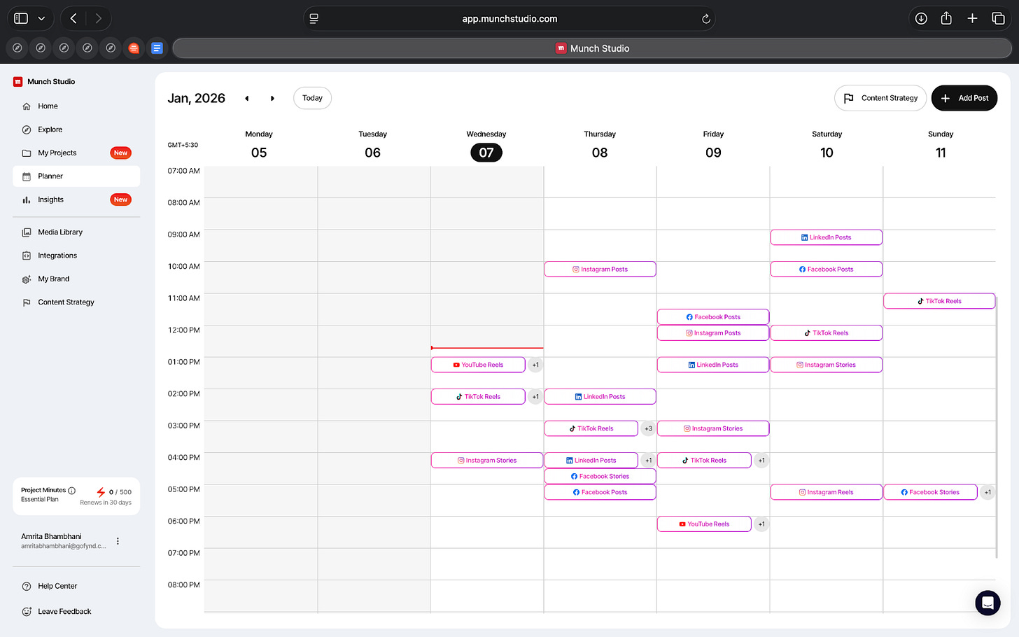 Munch Studio is an AI tool that plans, creates, and schedules social media content end to end. Built to keep social media running without needing constant attention, even when no one owns it full-time.