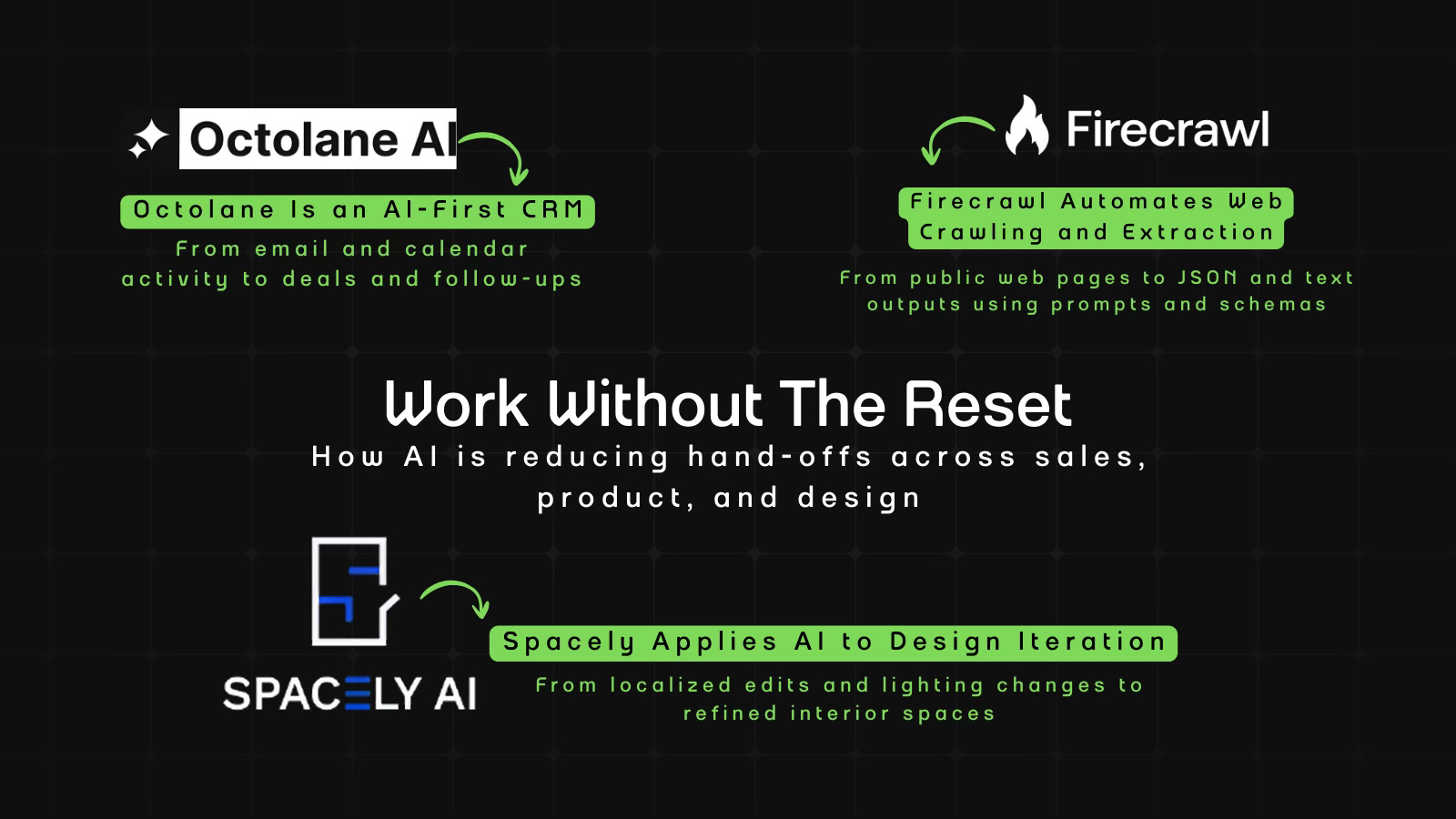 This edition looks at how Octolane keeps sales in sync, Firecrawl extracts data, and Spacely refines spaces.