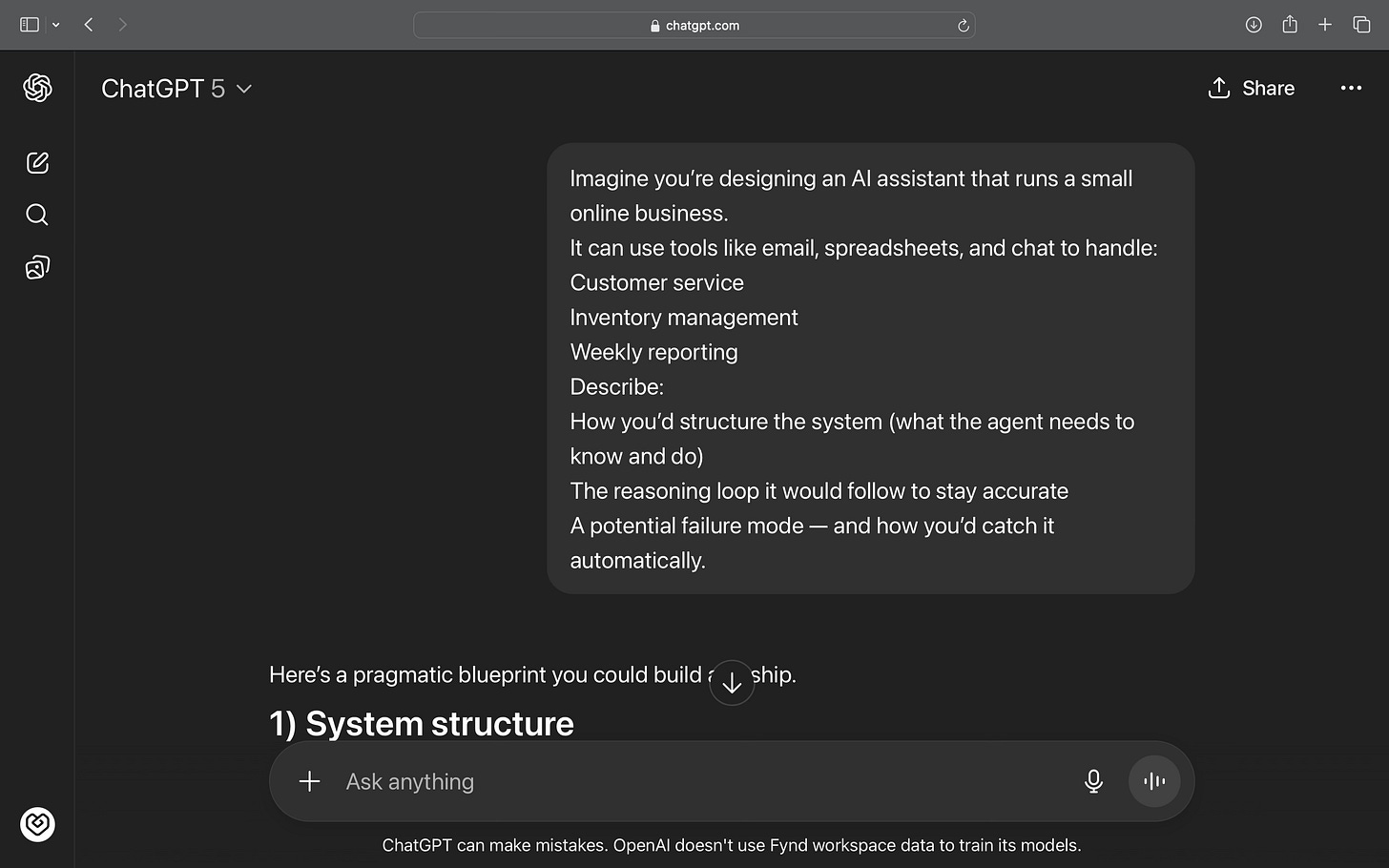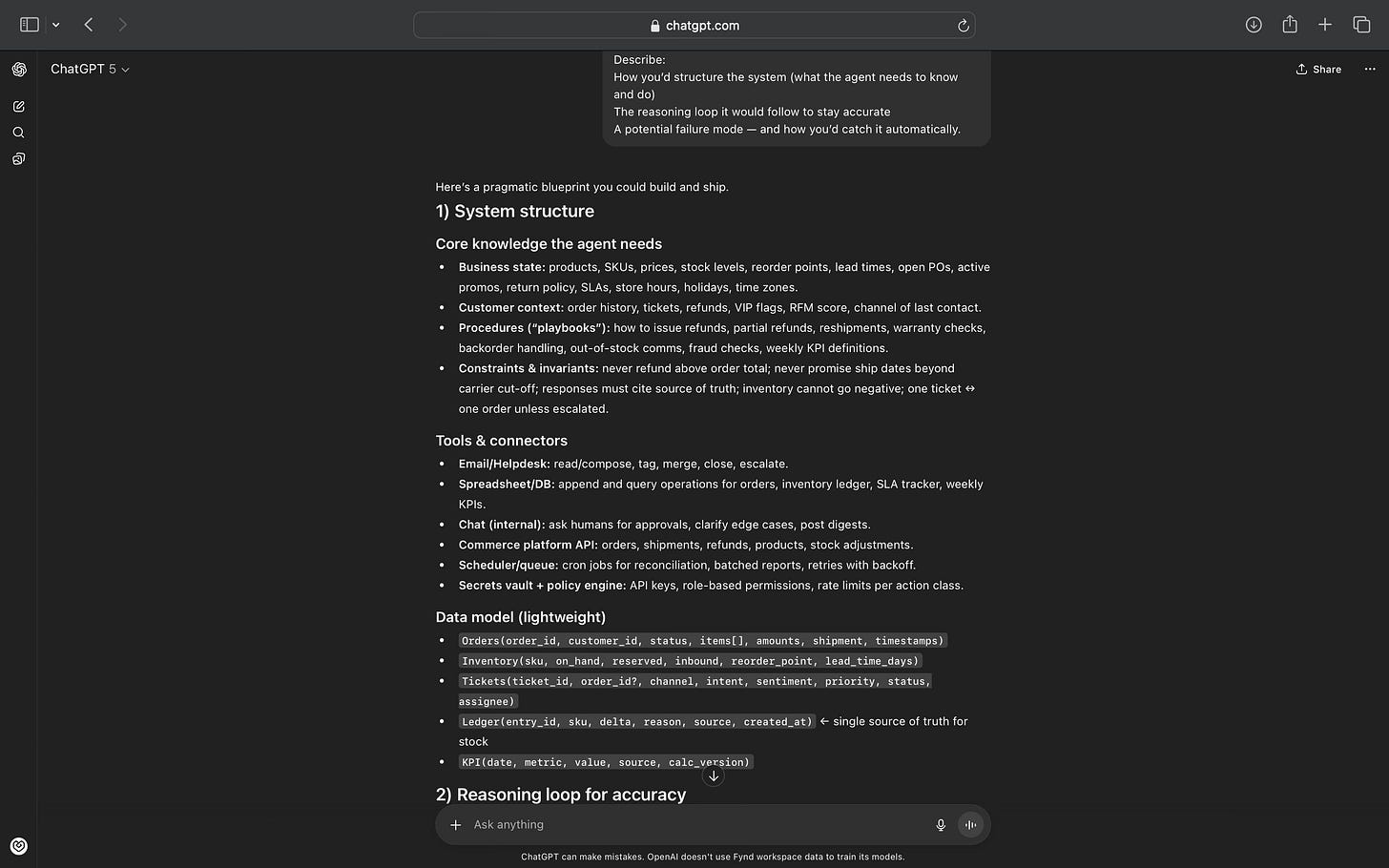 For the third task, I asked both models to design an AI assistant capable of running a small online business.