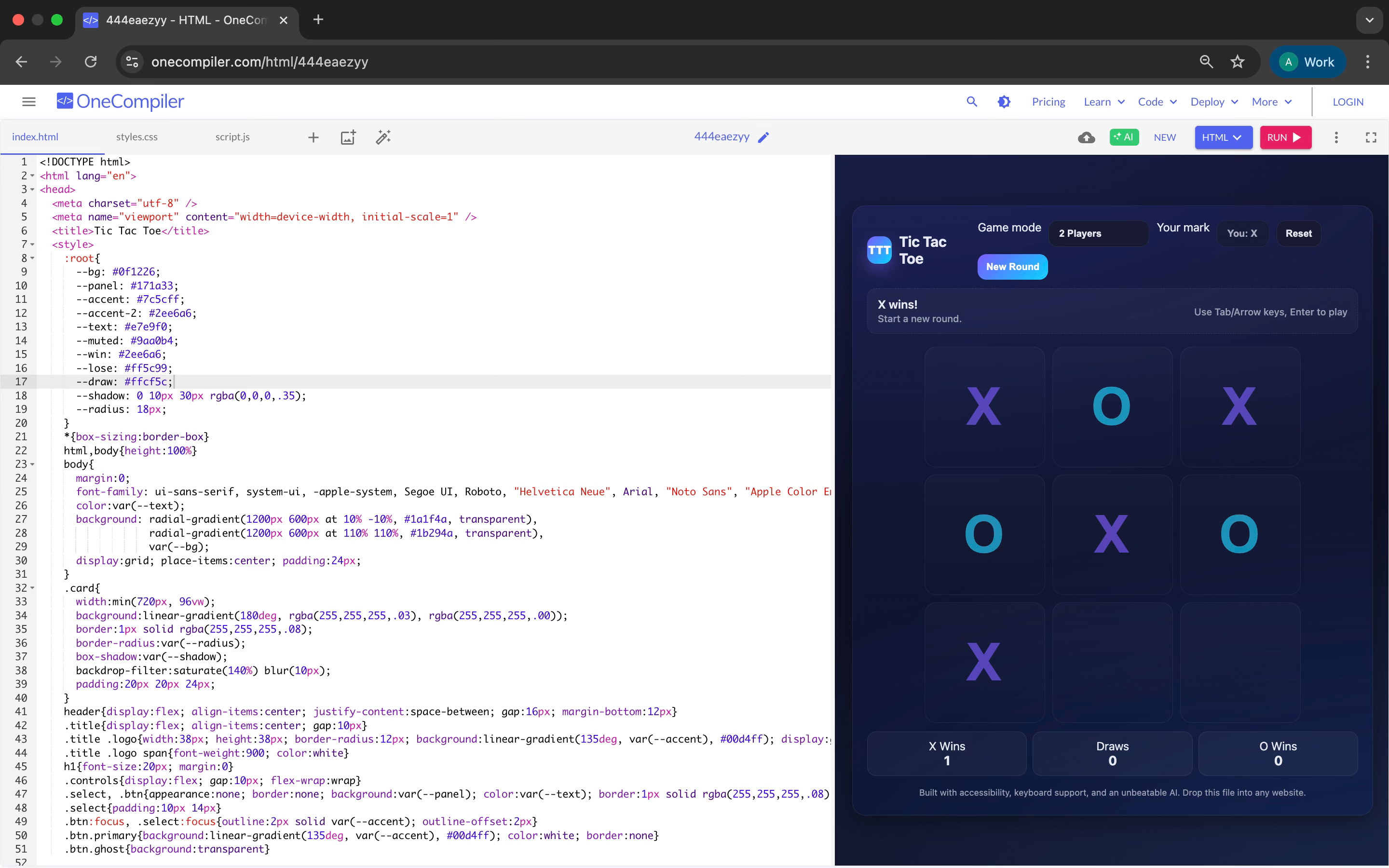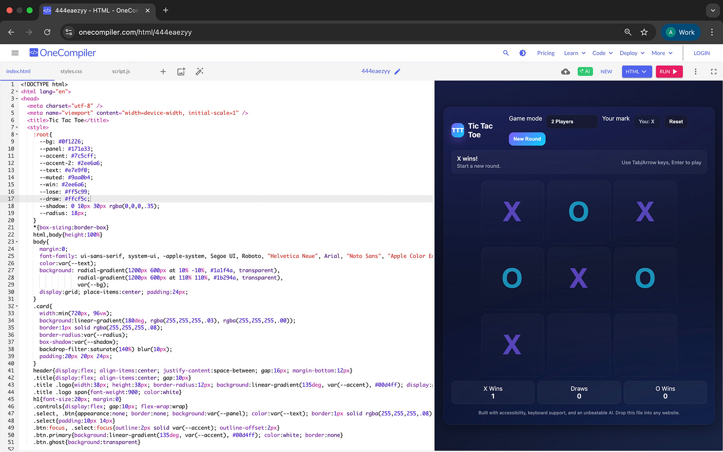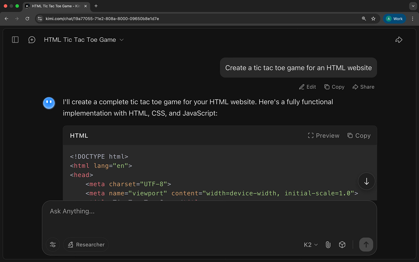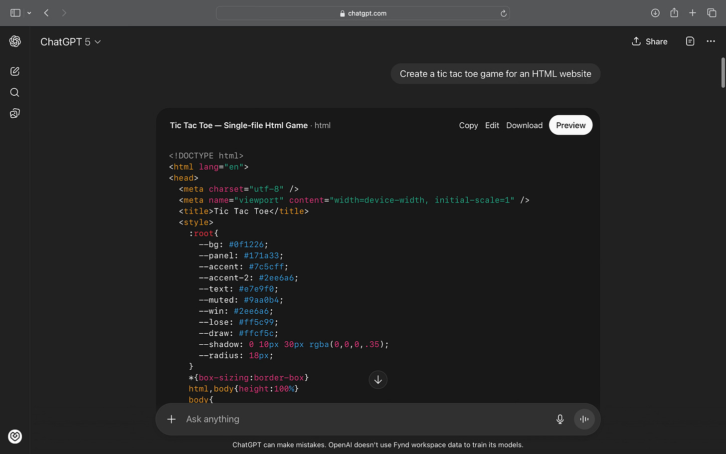 The first test was simple: “Create a Tic-Tac-Toe game for an HTML website.”