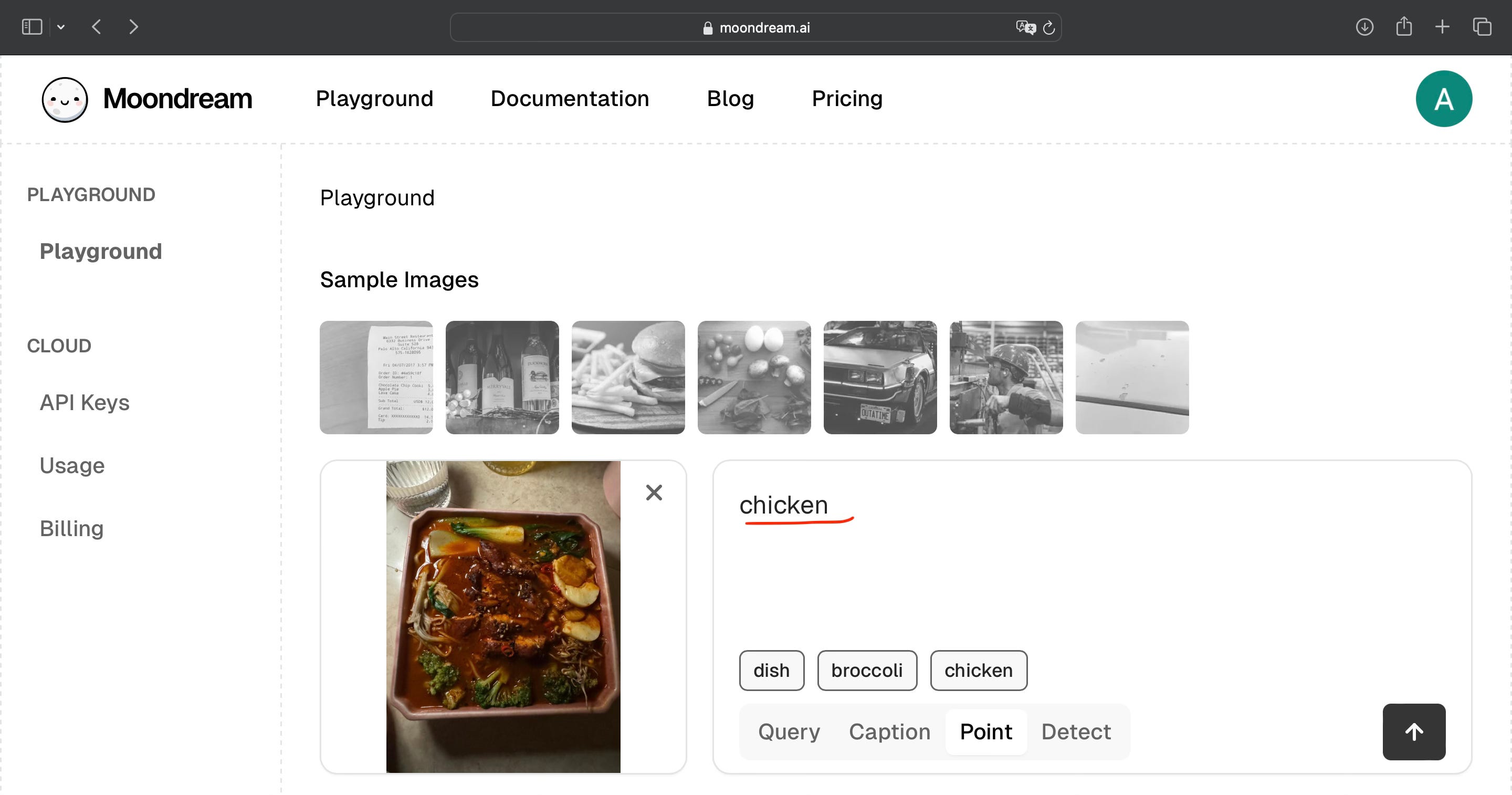 I tried Moondream through its Playground, which offers four core modes: Query, Caption, Detect, and Point.