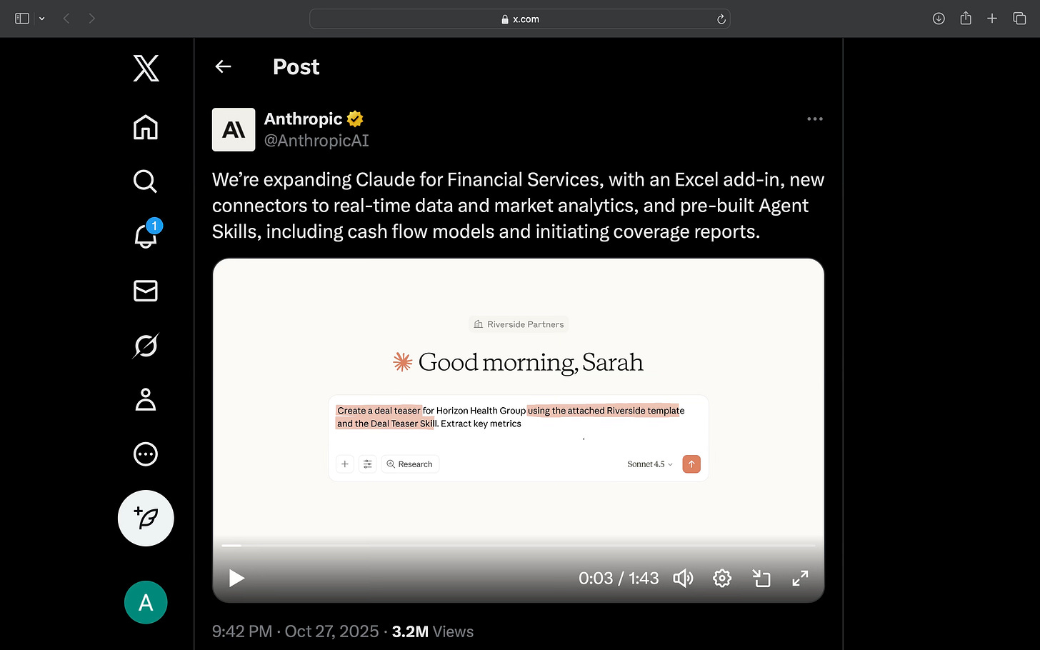 Recommended watch: How Claude is transforming financial services - a clear look at why embedding Claude inside tools like Excel, plus MCP-connected data and finance-specific agent skills, is moving teams from curiosity to production. The core framework is refreshingly pragmatic: retrieve → analyze → create.