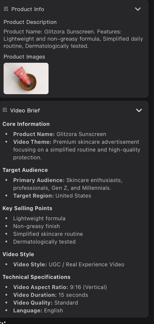 What makes this interesting is how deliberate the process feels. Topview behaves less like a creative tool and more like an execution layer for ad production. The AI isn’t just generating visuals. It’s making decisions about pacing, structure, and format based on common patterns in high-performing videos.