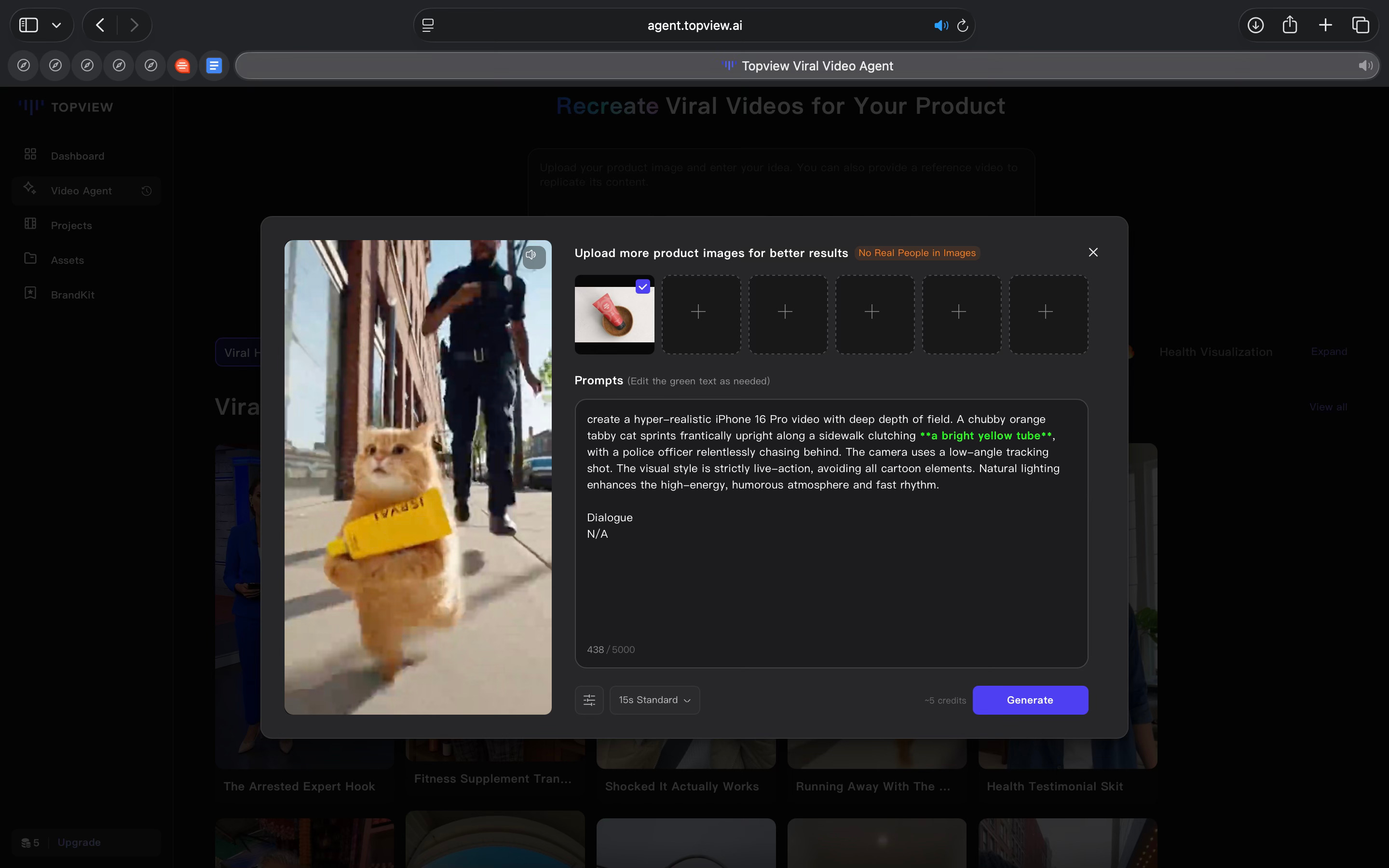 The Viral Video Agent is not a one-time generator. It keeps context across iterations, which means you can generate variations or change direction without starting over. This makes iteration feel more controlled and reduces the need to repeat the same inputs again and again.