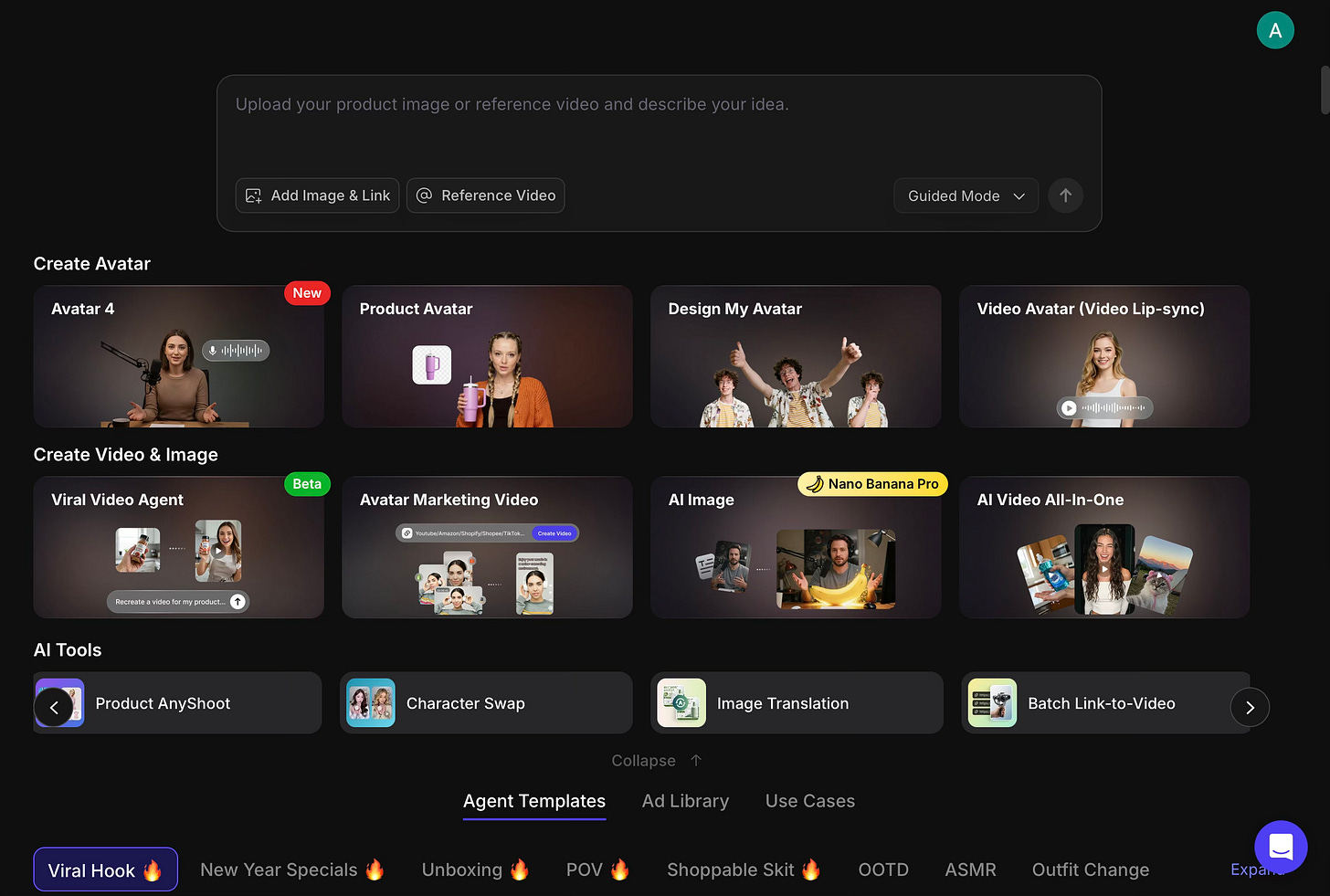 The agent templates add another layer of structure. Formats like viral hook, POV, shoppable skit, or ASMR are not just labels. Each template follows a different pacing and narrative pattern, and that shows up clearly in the final video. Choosing a template directly shapes how the video opens, how the product is introduced, and how the message flows.