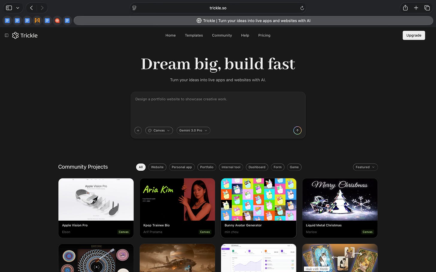 Trickle helps you turn product ideas into working interfaces using AI. It’s useful for early exploration, internal tools, and proofs of concept where seeing something real matters more than finishing a production build.