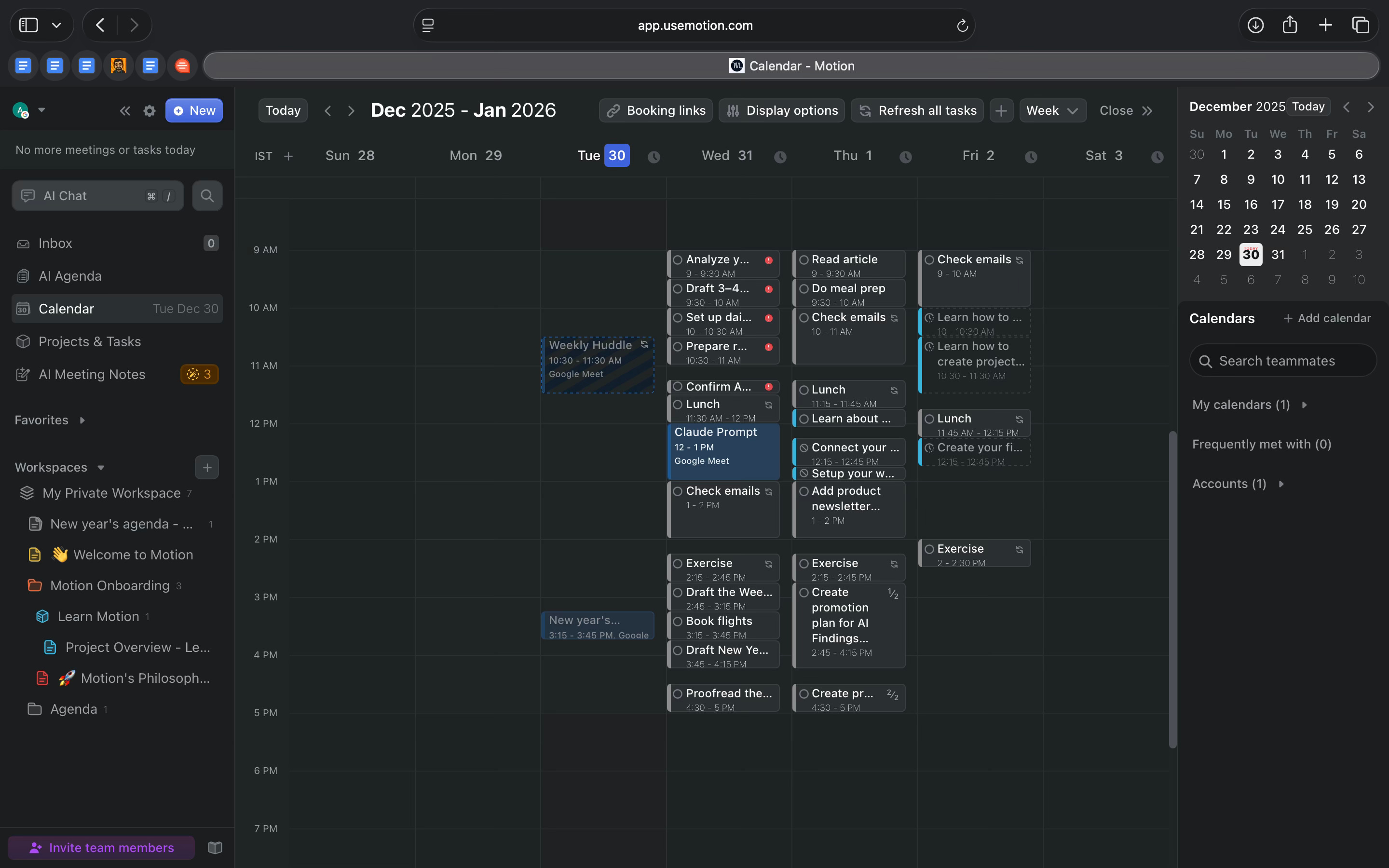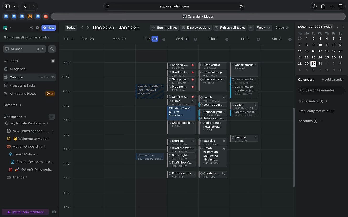 I found it most natural for managing project tasks where deadlines exist and work needs to be planned across a busy calendar. When tasks are clear and time-bound, Motion does a good job of turning them into a realistic plan without requiring constant manual reprioritisation.