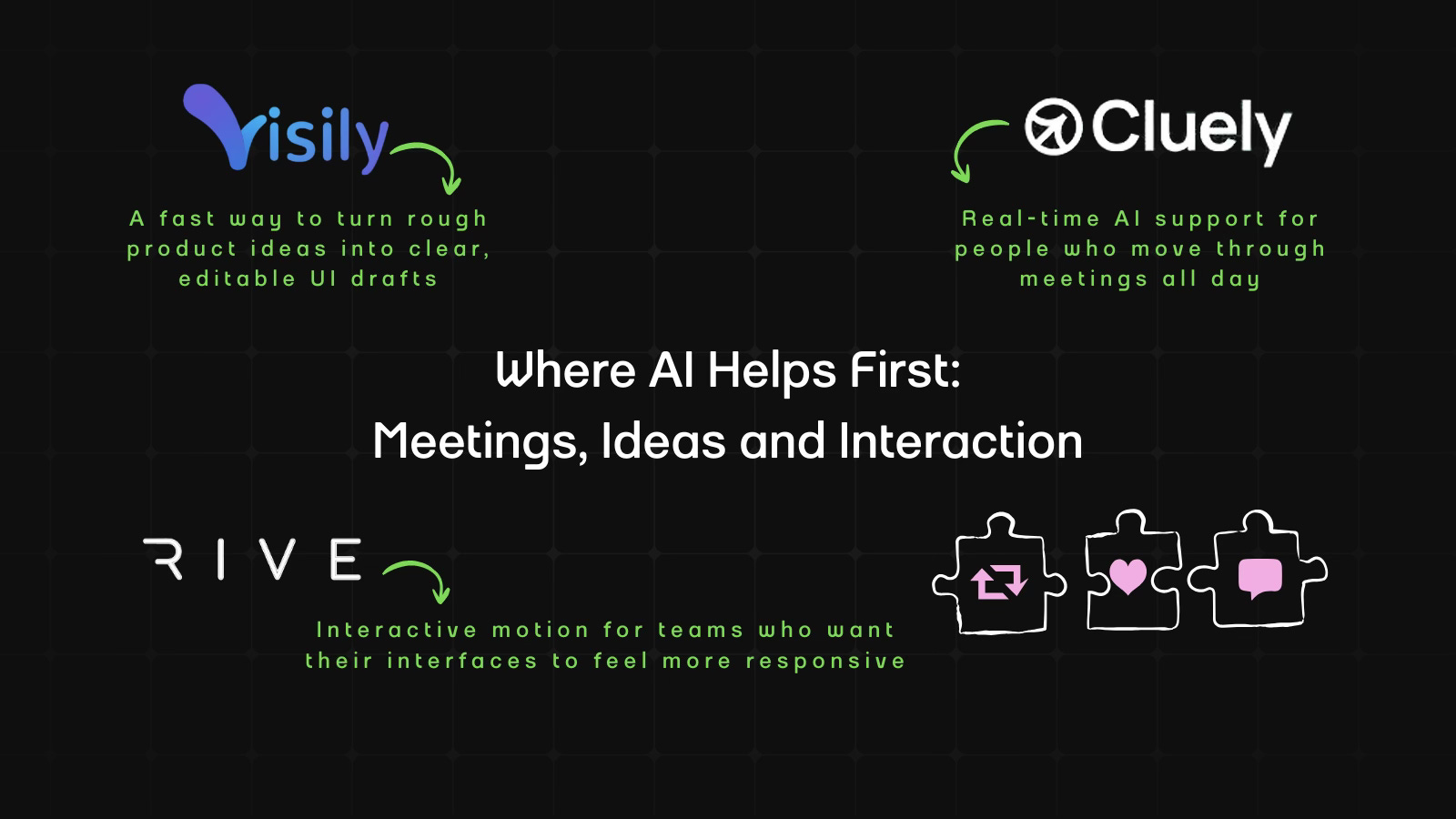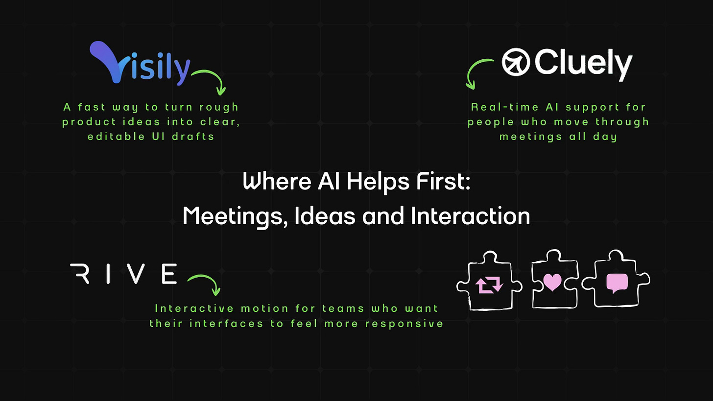 Cluely, Visily and Rive lead this week’s issue with practical ways to make early-stage work easier, from meeting clarity to first UI drafts to motion design.