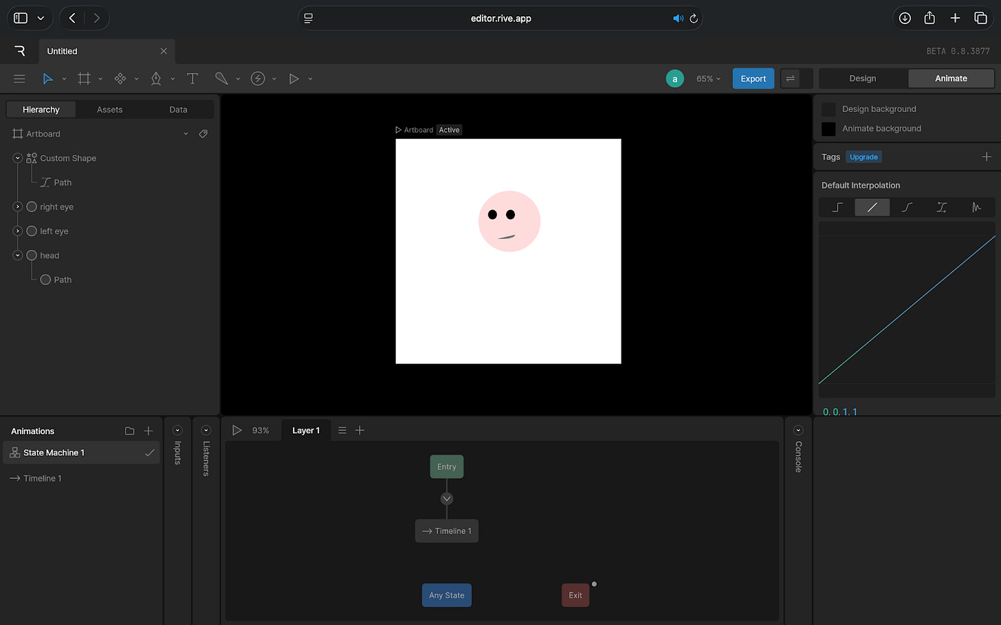 Rive is impressive, but it is not the easiest tool to pick up if you are new to motion. The idea of connecting different states and setting up how an animation should react takes some time to understand. If your background is in static design tools, the learning curve can feel noticeable at first.